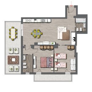 Für einen komfortablen Aufenthalt können Sie eine der 6 geräumigen ZWEI-SCHLAFZIMMER-WOHNUNGEN wählen 6 die in einem einfachen und eleganten Stil eingerichtet sind, .. Alle Wohnungen, sind vollständig , schallisoliert und verfügen über zwei Badezimmer, eine möblierte Terrasse, Klimaanlage und Kochnische. Sie sind etwa 80 Quadratmeter groß und einige von ihnen bieten einen herrlichen Blick auf das Meer und den Pinienwald.